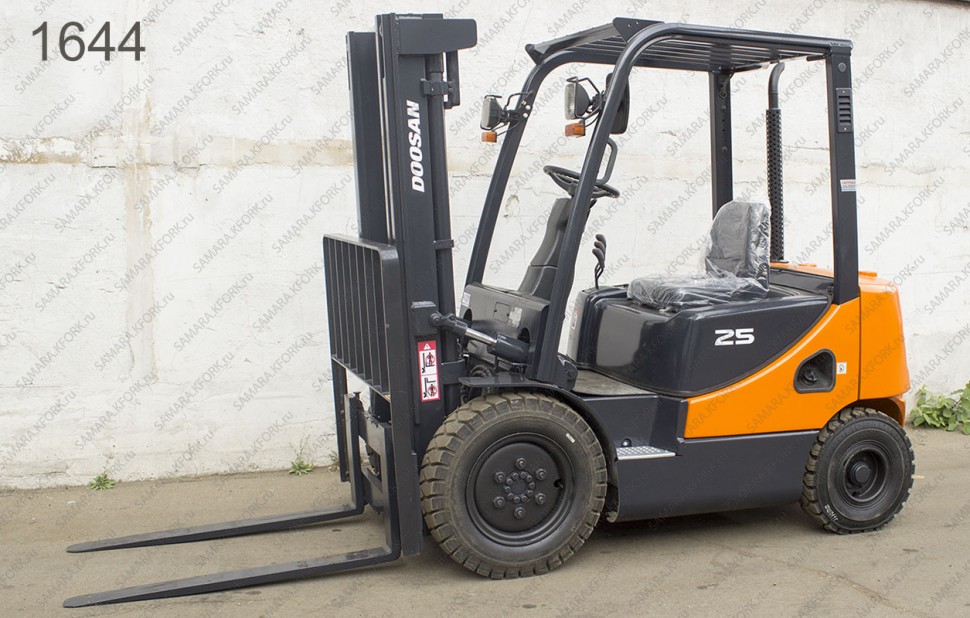 Дизельный автопогрузчик Doosan Б/У с интентарным номером 1644 2012 года выпуска. Состояние - Хорошее. Имеет грузоподъемность 2500 кг. Гарантия: 3 мес или 500 м/час.
